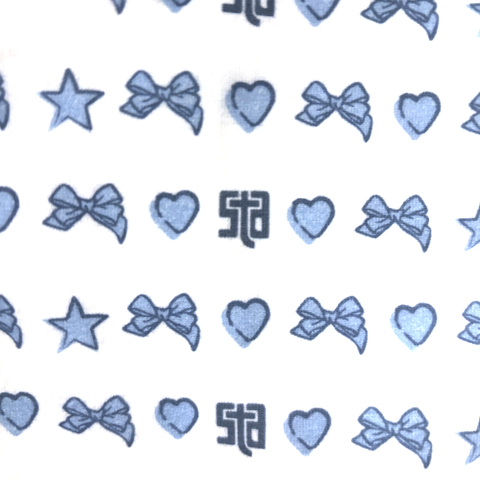 These buttery-soft cotton pajamas sets are crafted from a custom fabric featuring a repeat pattern of bows, stars, and STA logos, finished with detailed piping. One-of-a-kind, ultra-soft, and absolutely adorable!